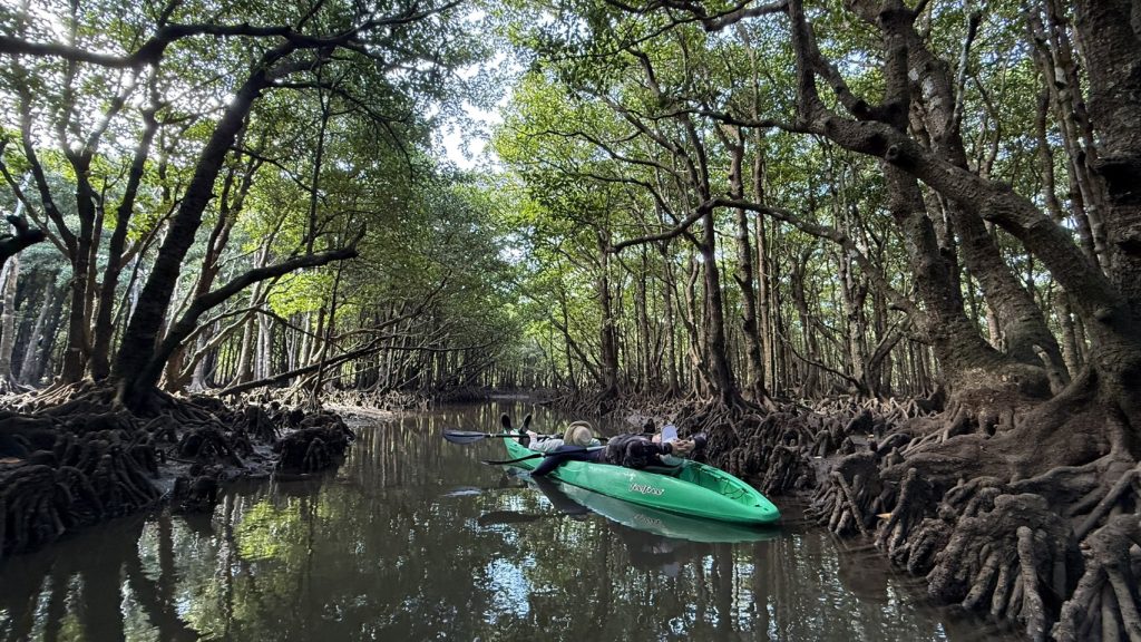 写真は、1月下旬に妻と訪ねた石垣島の北部で体験したマングローブカヌーの一コマ。